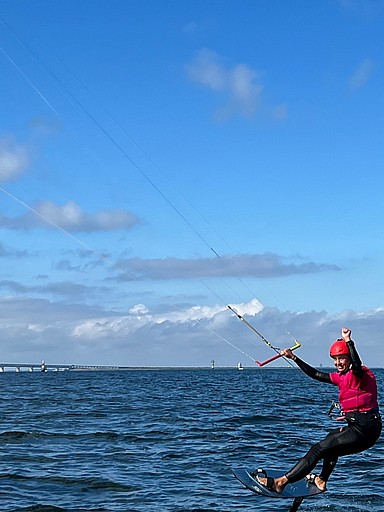 Johanna Hjertberg (MSS) som seglade iQFoil under helgens tävlingar var en av flera tjejer som deltog och Karolina Larsson från Åsa Surfklubb fick ta emot pris som bästa dam i KiteFoil.
